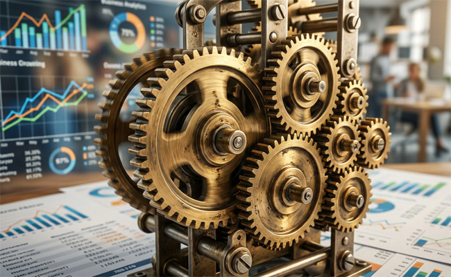 To ważna różnica. Rozpęd oznacza, że coś działa, dopóki stale dokładasz paliwa: reklamy, ludzi, budżet, czas. Koło zamachowe oznacza, że każdy kolejny klient lub każdy kolejny obrót systemu sam wzmacnia następny. Wtedy biznes zaczyna rosnąć coraz łatwiej, a nie za każdym razem od zera.