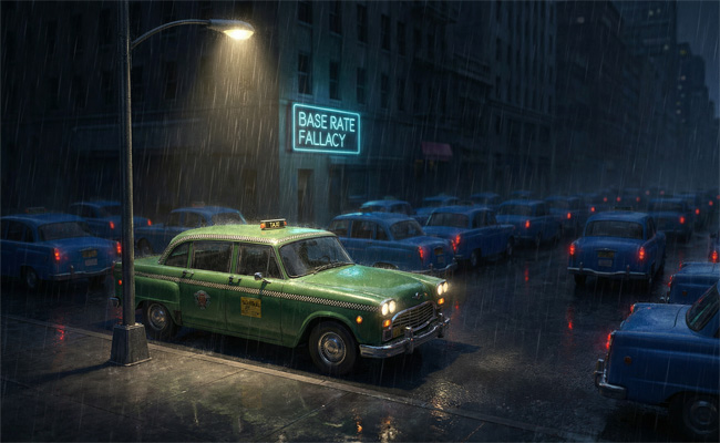 To zjawisko w psychologii nazywa się błędem wskaźnika bazowego (ang. Base Rate Fallacy).